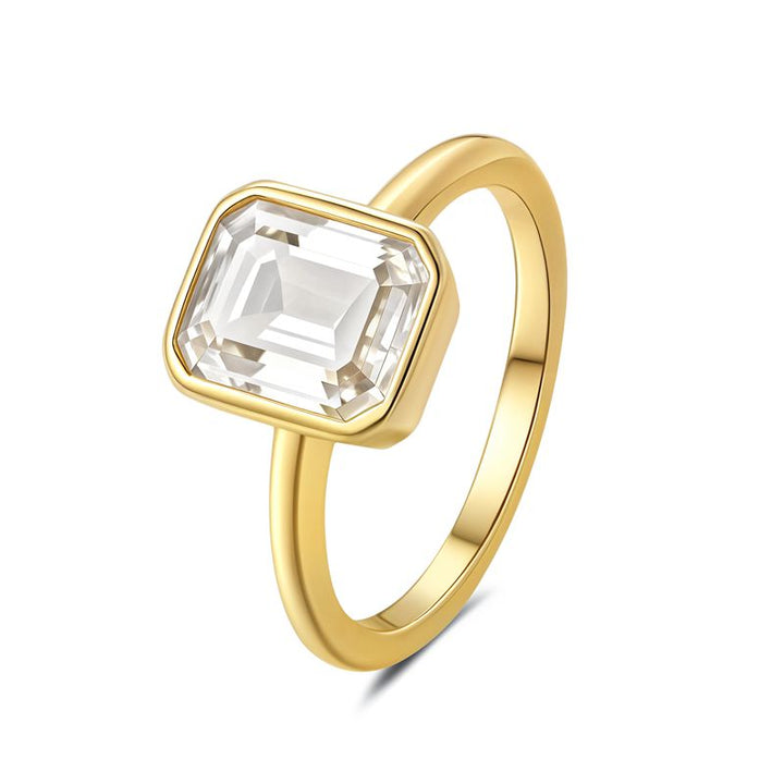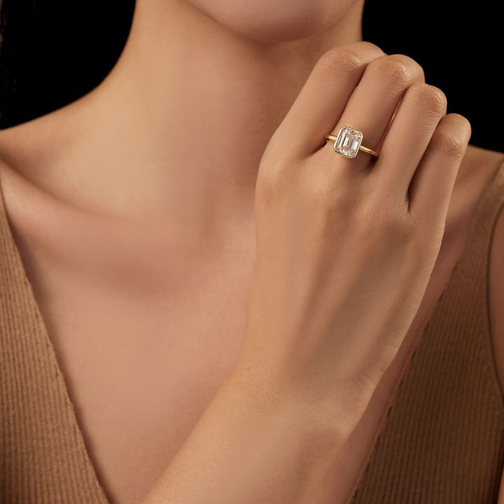 R007- Bezel Set 3CT Emerald Cut Moissanite Ring