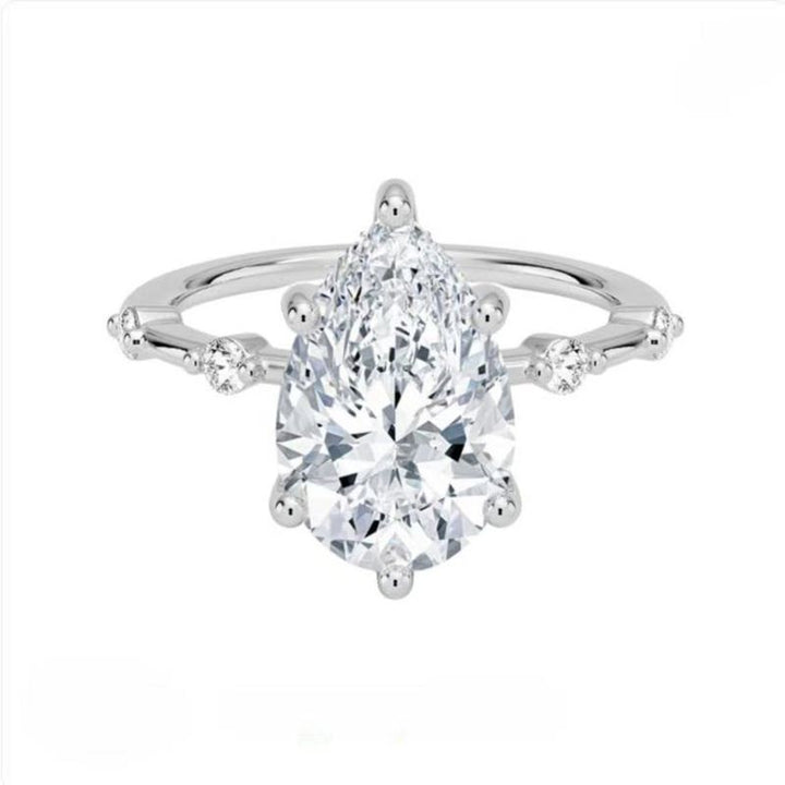 R021-Ainan Custom 3CT Pear Cut Moissanite Hidden Halo Ring